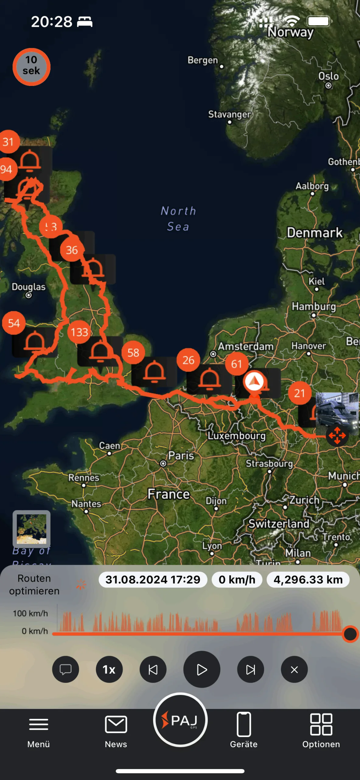 Foi sempre muito tranquilizador saber que o nosso PAJ Vehicle Finder estava a vigiar a nossa casa sobre rodas. Por um lado, permitiu-nos registar todo o percurso com uma precisão que, de outra forma, seria impossível. Por outro, manteve a autocaravana sob vigilância sempre que saíamos para explorar.
