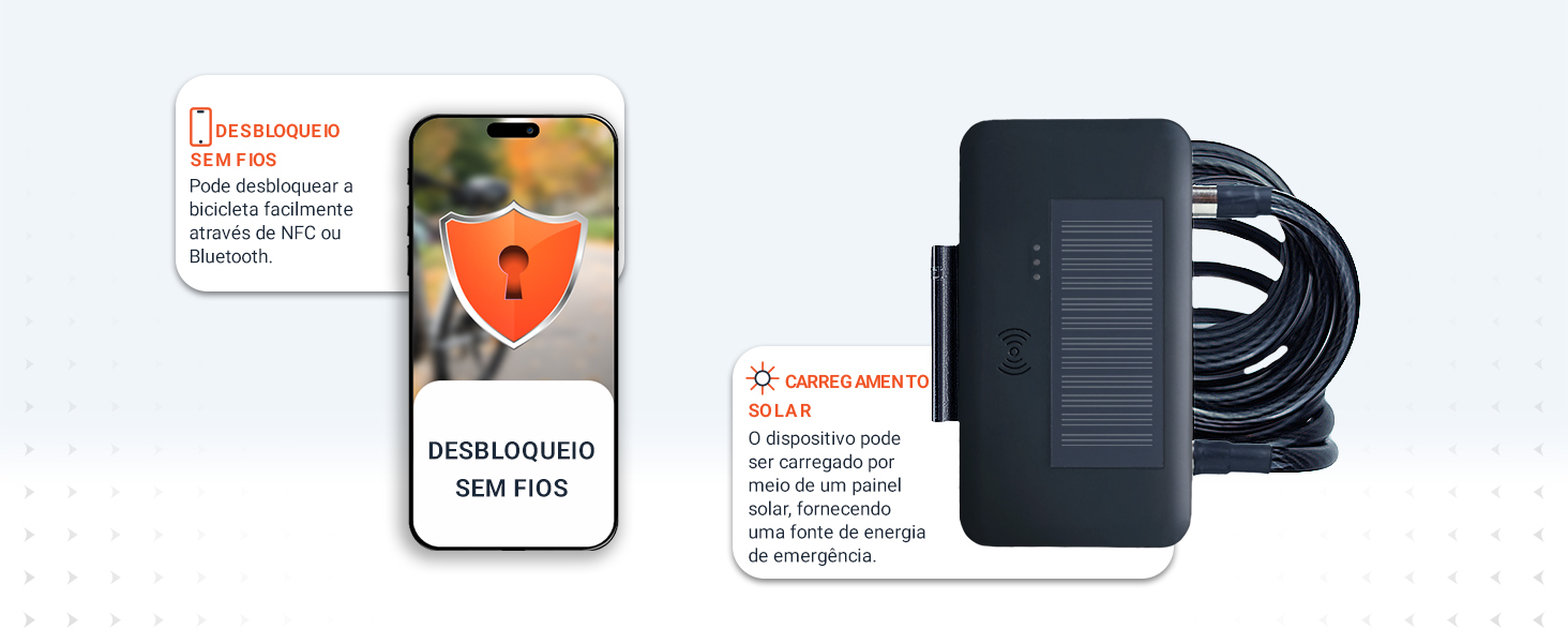 A máxima segurança alia-se à tecnologia inteligente: este inovador sistema 2 em 1, composto por rastreador GPS e cadeado para bicicleta, protege a sua bicicleta ou e-bike em duplicado. Fisicamente e digitalmente. Graças ao desbloqueio sem fios por NFC, ao carregamento solar integrado e à localização 4G em toda a Europa, a sua bicicleta permanece sempre segura e localizável. As funções de alarme inteligentes com notificação push e alarme sonoro no dispositivo permitem-lhe reagir de imediato a qualquer acesso não autorizado. Robusto, 100% à prova de água e concebido para uso diário.